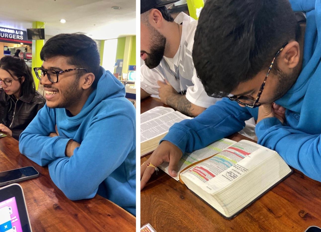 Quando chegaram no aeroporto, ele teve a oportunidade de fazer o primeiro devocional dele lendo a Bíblia com o time de missionários.